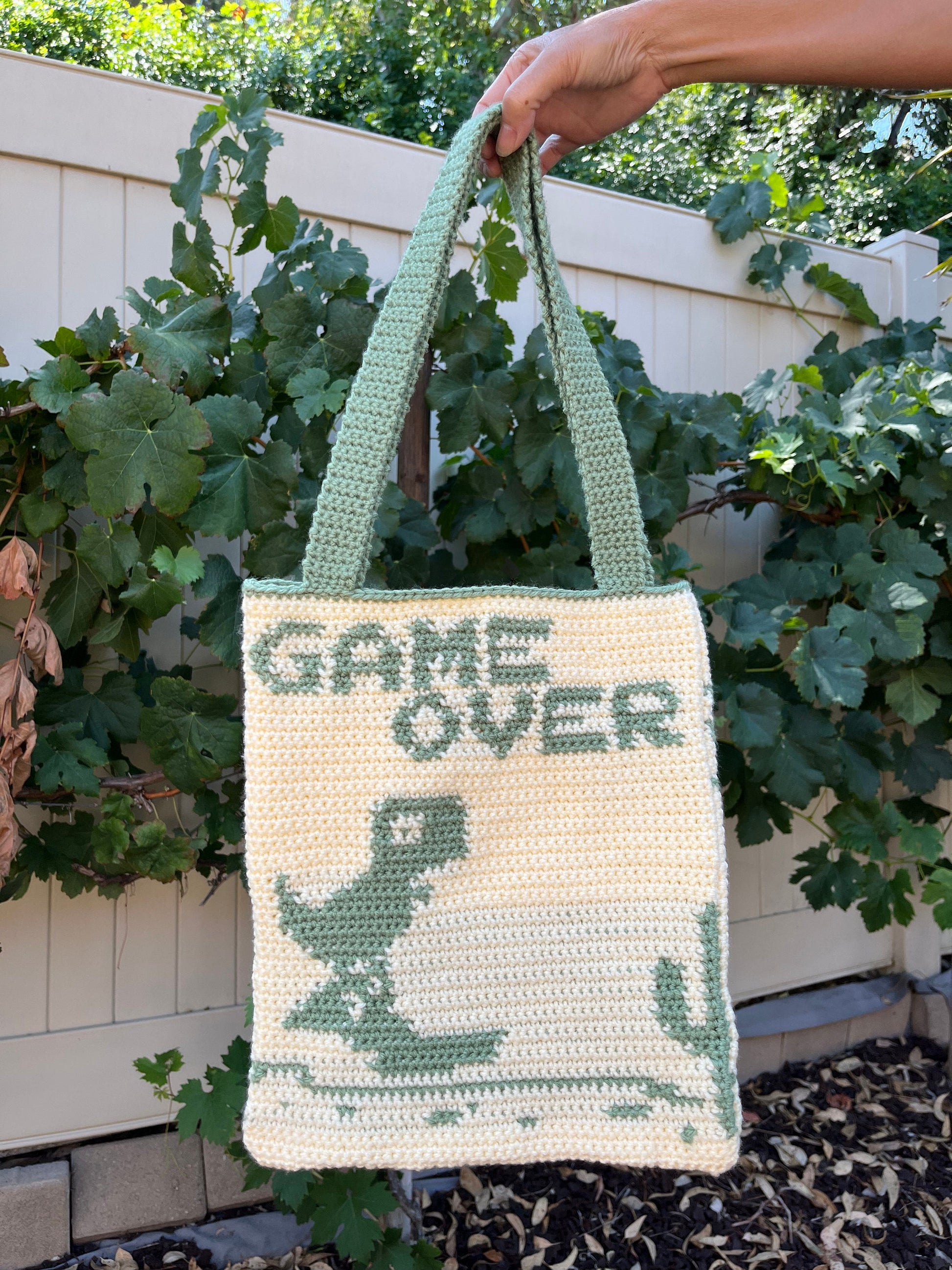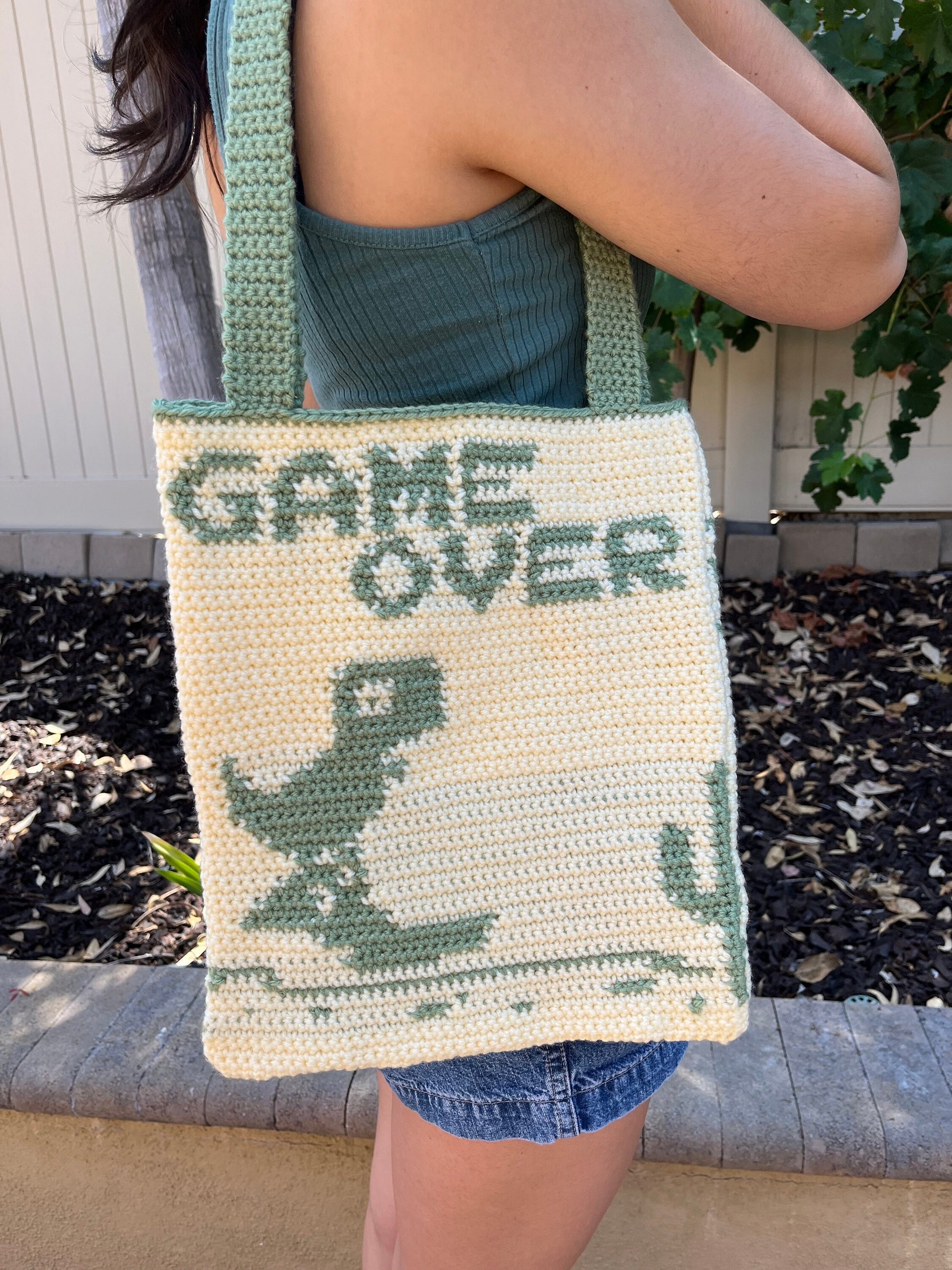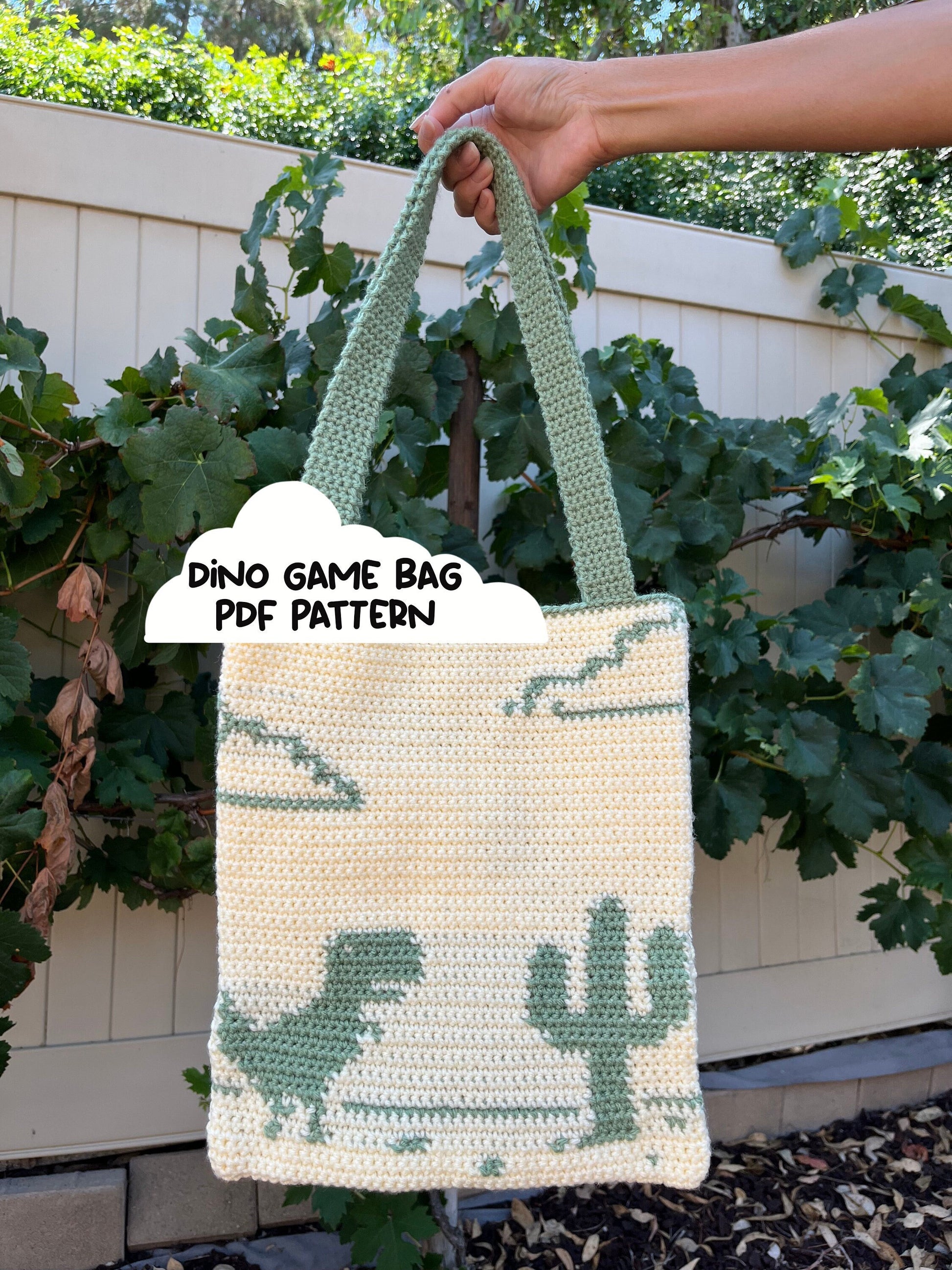 This is a PDF crochet pattern for the Dinosaur Game Bag.