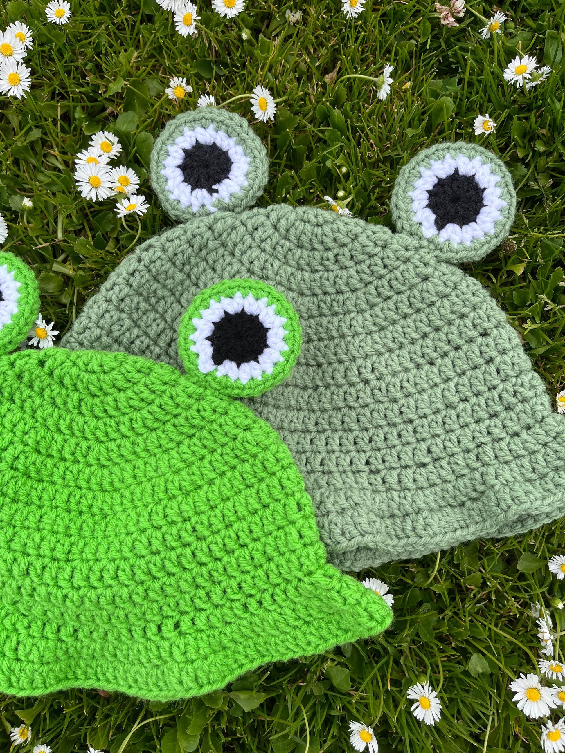 Handmade Green Crochet Frog Bucket Hat 🐸
