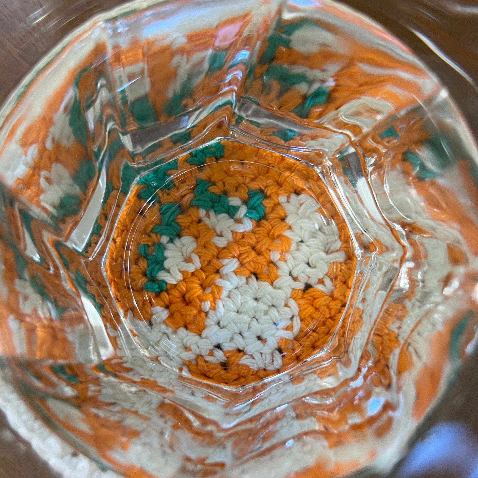 Dimensions: ~5 in (will vary on the coaster & yarn used)